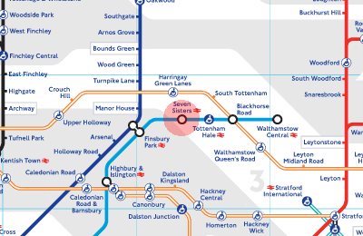 Seven Sisters is a London Overground and London Underground Victoria line station in the Seven Sisters area of the London Borough of Haringey, north London. The station is in Travelcard Zone 3. Seven Sisters lies between Finsbury Park and Tottenham Hale on the Victoria line and between Stamford Hill and Bruce Grove on the Lea Valley Cheshunt/Enfield Town Line from Liverpool Street, operated by London Overground. Abellio Greater Anglia also serve at peak times. It is a short distance from South Tottenham station on London Overground Gospel Oak to Barking line.